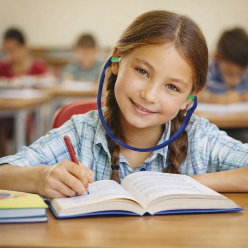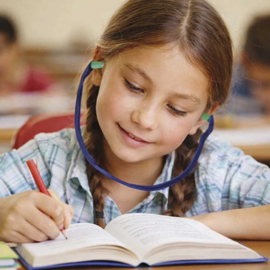 “Auris Mini” adskiller sig ved ikke at dække hele øret. I stedet hviler de bløde silikonepropper uden på øregangen, hvilket gør dem både sikre og behagelige at bruge – uden at skulle indsættes i øret. Den moderate støjdæmpning sikrer, at barnet fortsat kan opfange vigtige beskeder fra læreren.